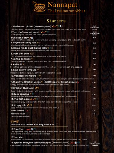 Nannapat Thai Restaurant and Bar is a family-run establishment that prides itself on authenticity and flavour. Our passion for Thai cuisine shines through in every dish we serve, ensuring a memorable dining experience for all our guests.